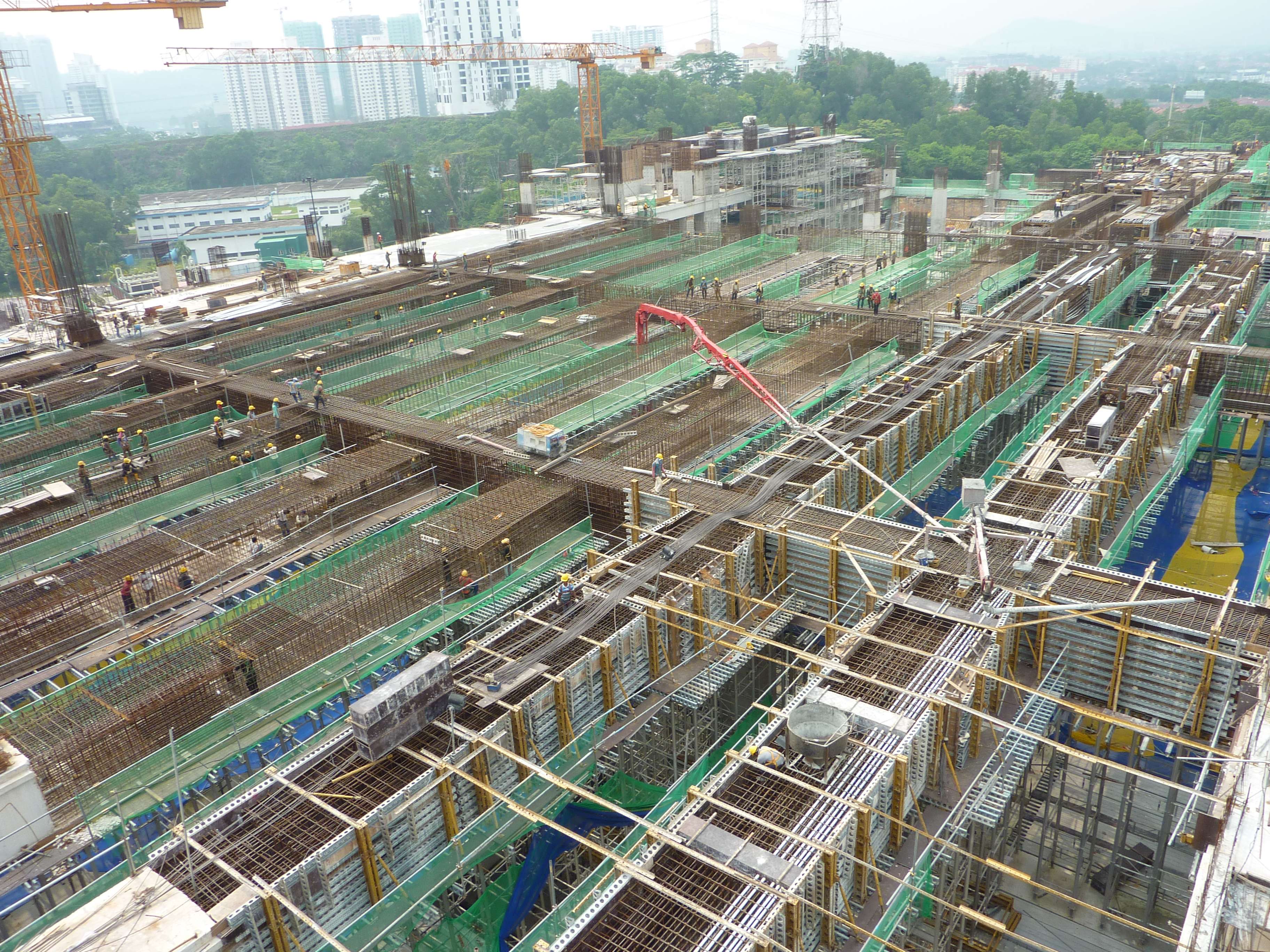 Daewoo E&C had appointed SEAL Consult as the sole Sub-Contractor for the RC structure work comprising the Main exhibition building (145,191 sqm) and the traffic road tunnel spanning 480m length. The key highlights of the main building are the floor multiple long-span transfer girder (30m length) across the exhibition area, tall large column exceeding 15m height and various temporary working and load platform for the heavy steel roof framing work.